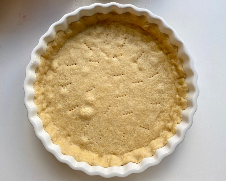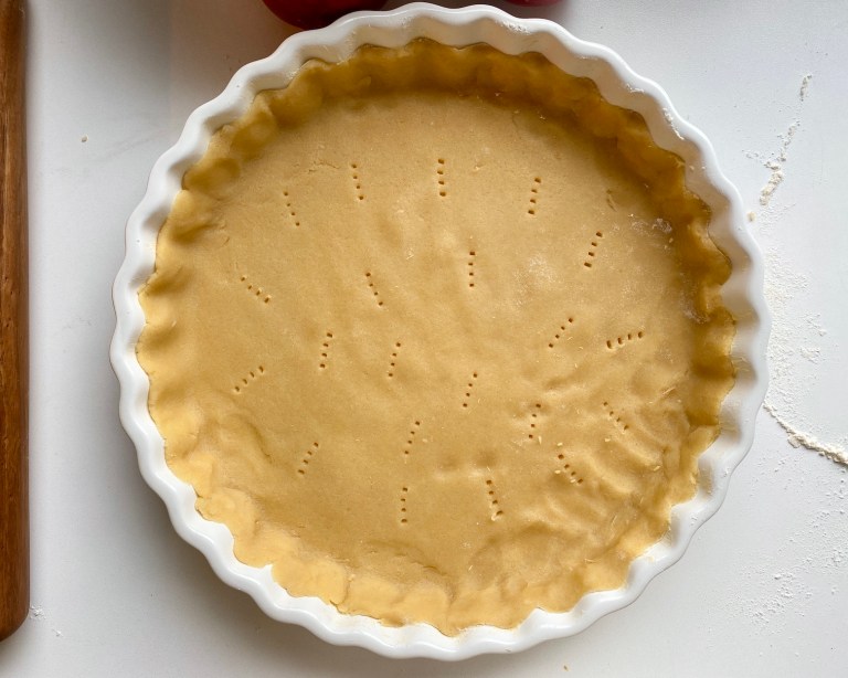 Trykk bunnen inntil kantene på paiformen med fingrene og prikk litt her og der