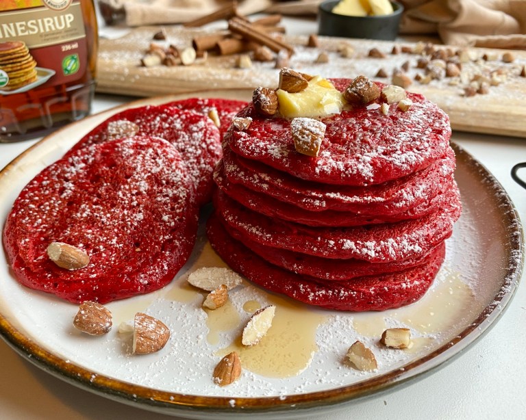 Her har jeg en smørklatt, lønnesirup og ristede mandler 🙂