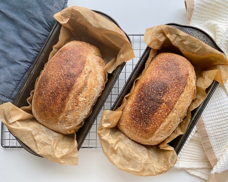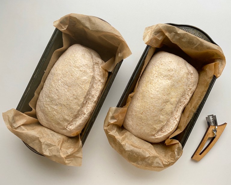 2 små brød som legges i bakepapirkledte eller oljesmurte brødformer.