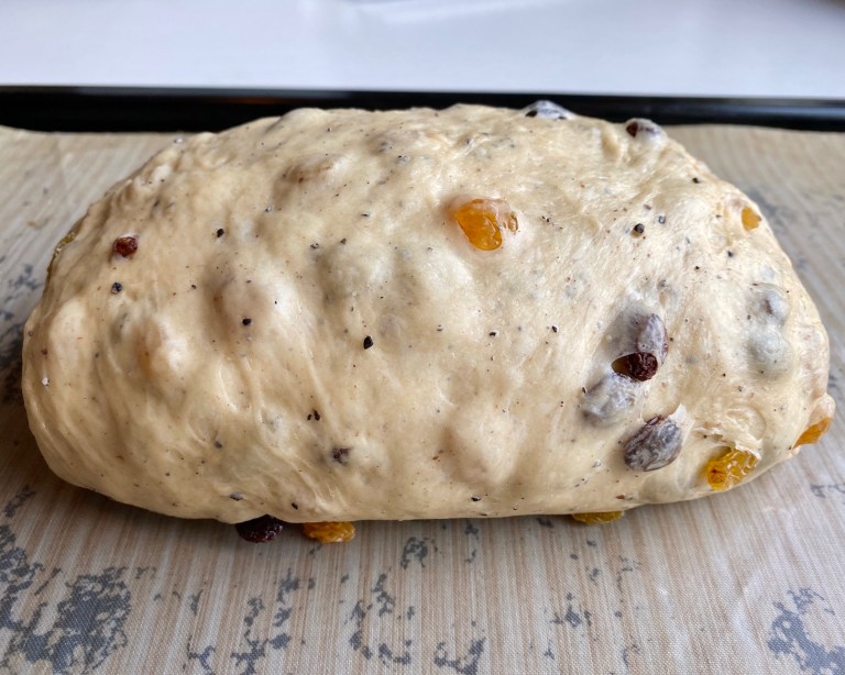 deigen så rosinene blir jevnt fordelt. Form deigen til en stor bolle.