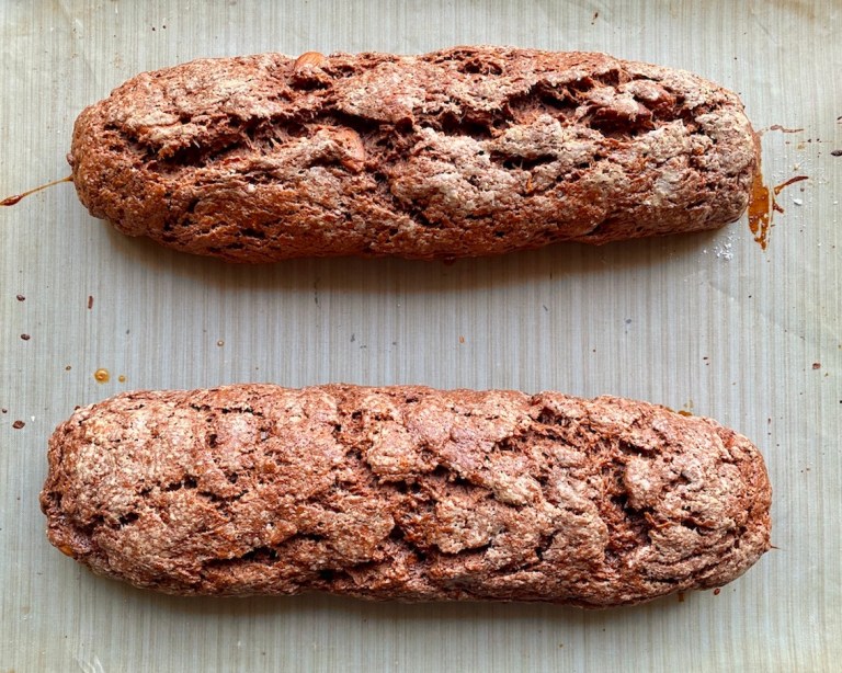 Legg de over på en skjærefjøl og kutt stykker diagonalt på ca. 1,5 cm tykkelse.