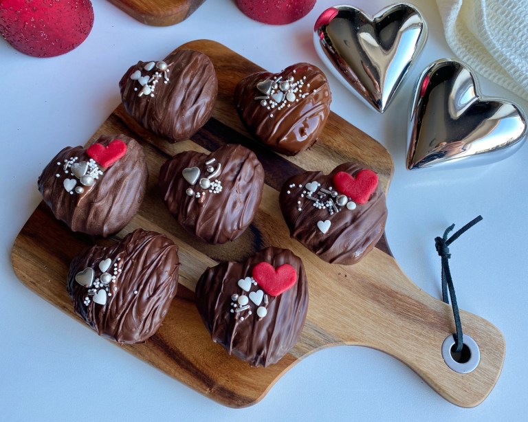 hjertene på sjokoladen er marsipan jeg har formet 🙂