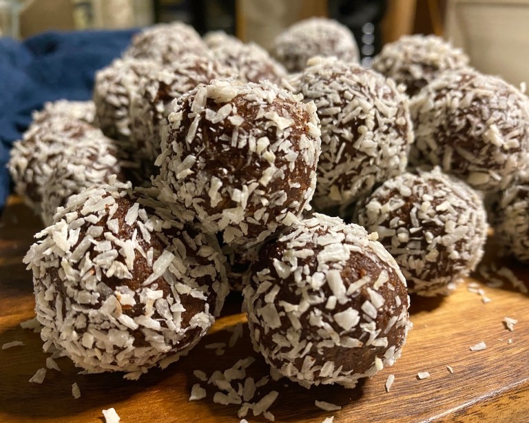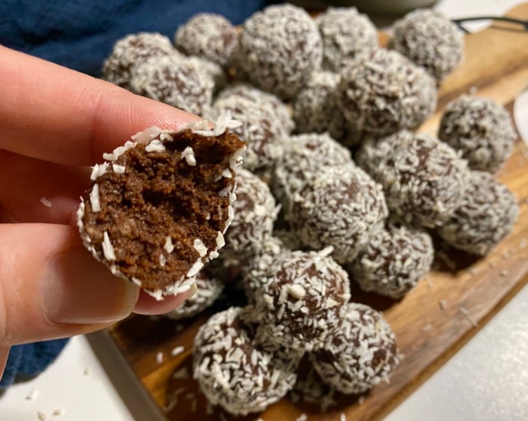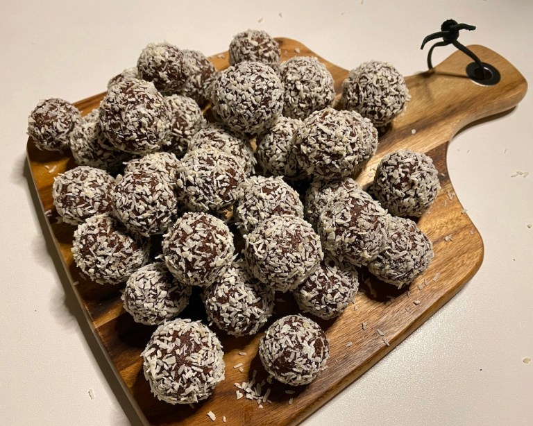avkjøles litt og ha de også i foodprosessoren. Tilsett kakaopulver, kaffe, kokos,
