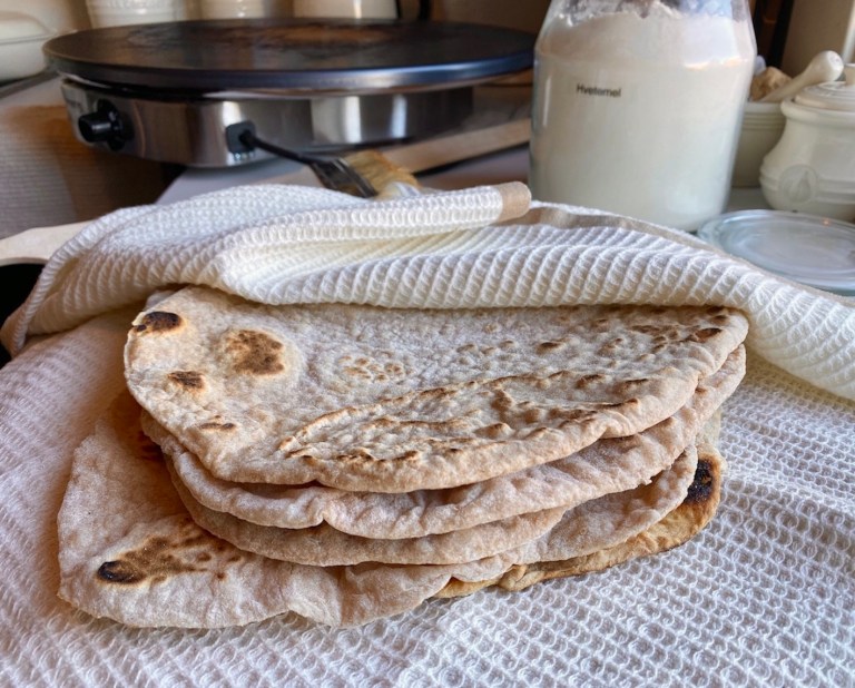 Kjevle deretter ut en og en til et tynt rundt flatbrød.