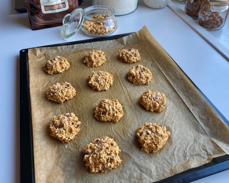 Sett brettet inn midt i ovnen og stek cookiesene i 13-15 minutter.