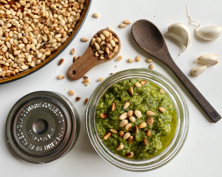 Hjemmelaget pesto smaker kjempegodt og mye bedre enn pesto