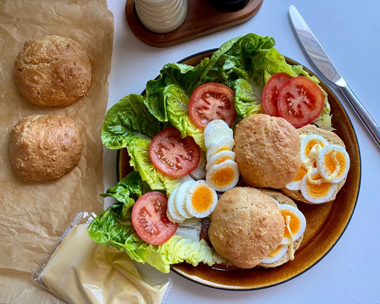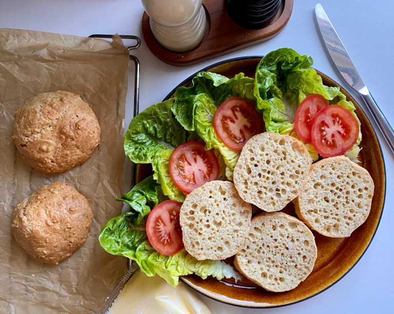 Oppskriften er beregnet til 2 porsjoner, 4 rundstykker, og er LavFodmap