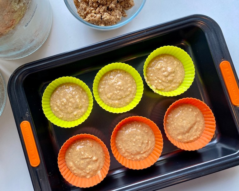Fordel røren i 6 store smurte muffinsformer (eller flere små).