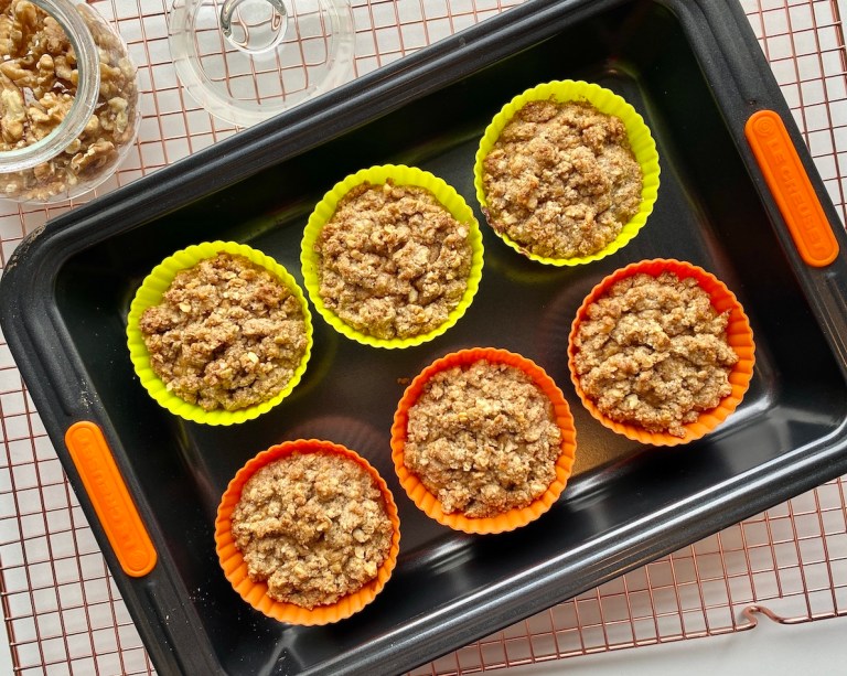 Fordel crumble over. Sett det inn midt i ovnen og stek de i 24-26 minutter.