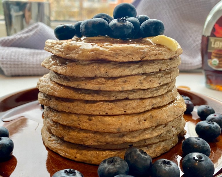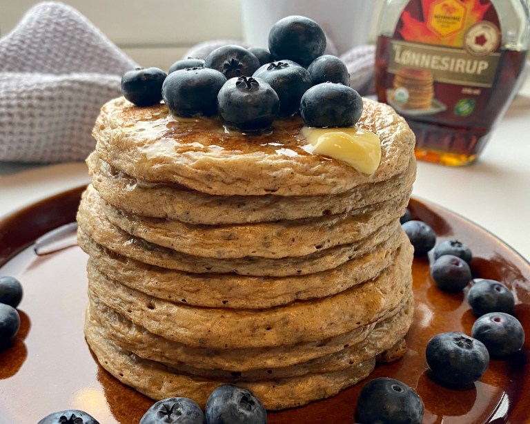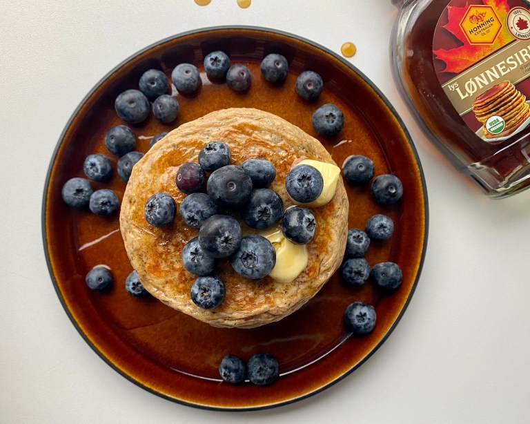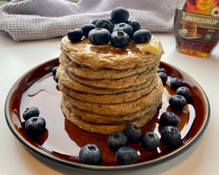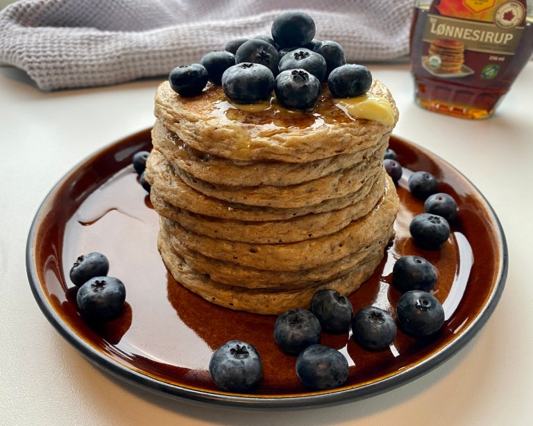 Toppes med en smørklatt, lønnesirup og blåbær og så er det bare å nyte! 😀