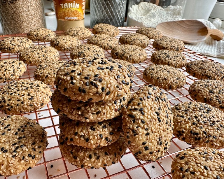 så anbefaler jeg disse supergode cookiesene. Laget med tahini, som