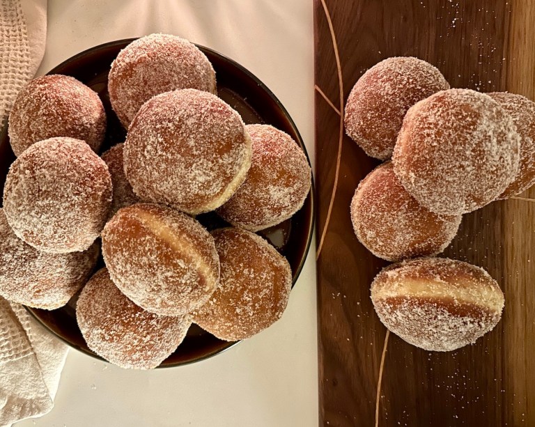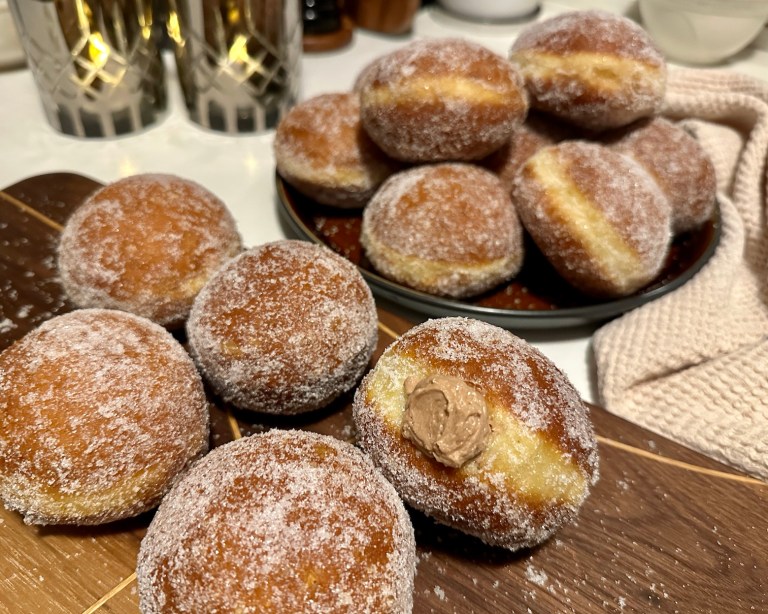 Disse berlinerbollene (eller donuts / doughnuts) er fylt med hjemmelaget