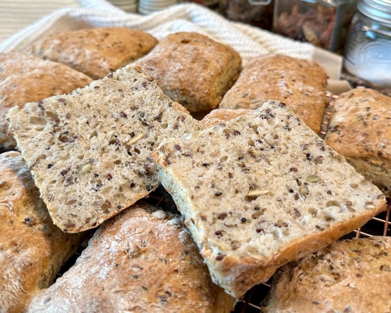 14 kommentarer om “Surdeigsrundstykker med havre og masse frø