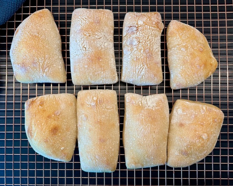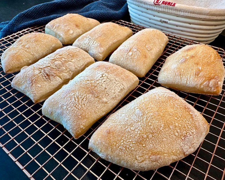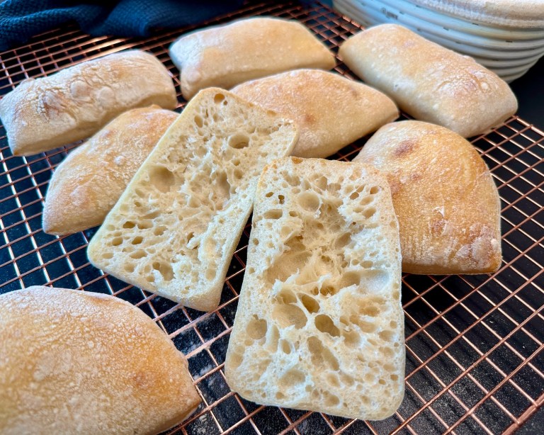Disse ciabattaene er bakt med 80% hydrasjon og resultatet er helt nydelig 🙂