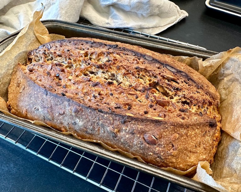 Brødet er stekt i brødform og passer fint å ha i matpakka 🙂