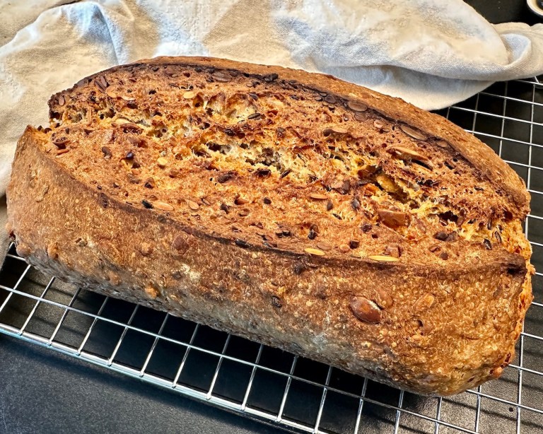 Ta brødet ut av ovnen og formen og avkjøl det på rist.
