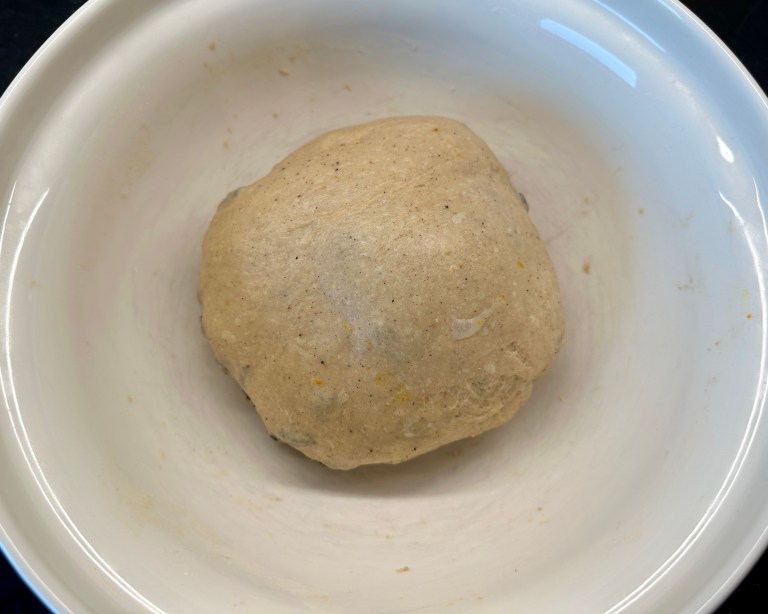 til det ikke er noe mer tørt i bakebollen. Dekk til og la den hvile i 1 time.