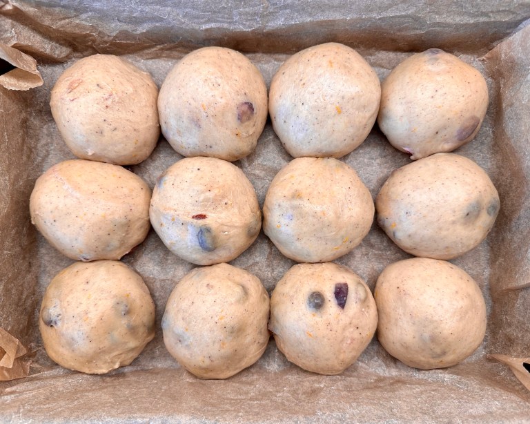 Jeg har brukt melis og appelsinsaft. Påskebollene er ikke så vanlige å lage i
