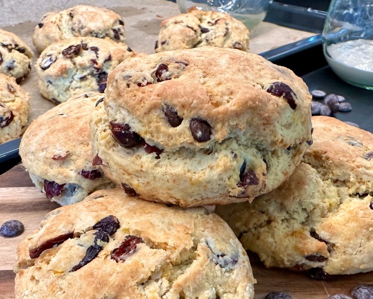 Scones laget med surdeigsstarter, appelsinsaft og skall og