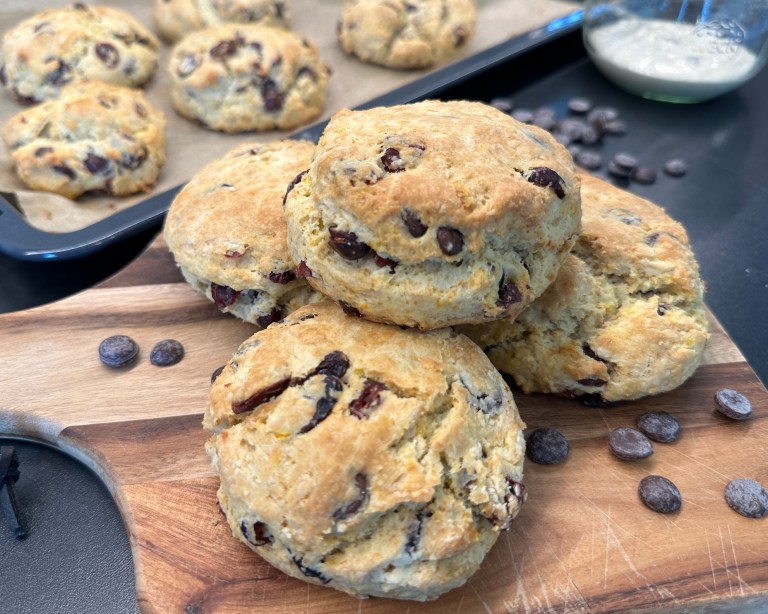 Scones laget med surdeigsstarter, appelsinsaft og skall og