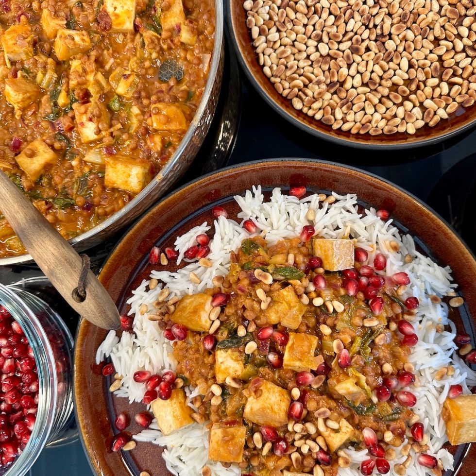 Spicy tofu i kokosmelk og red curry paste