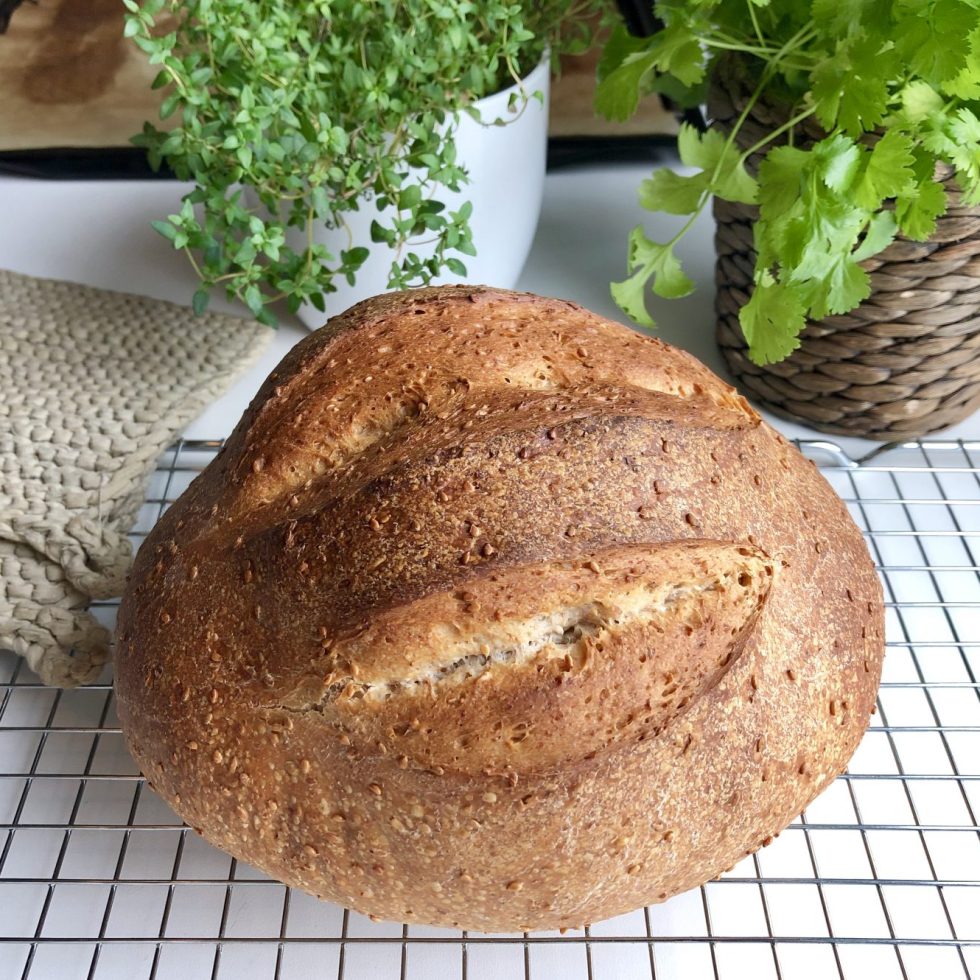 Surdeigsbrød av spelt med sesamfrø