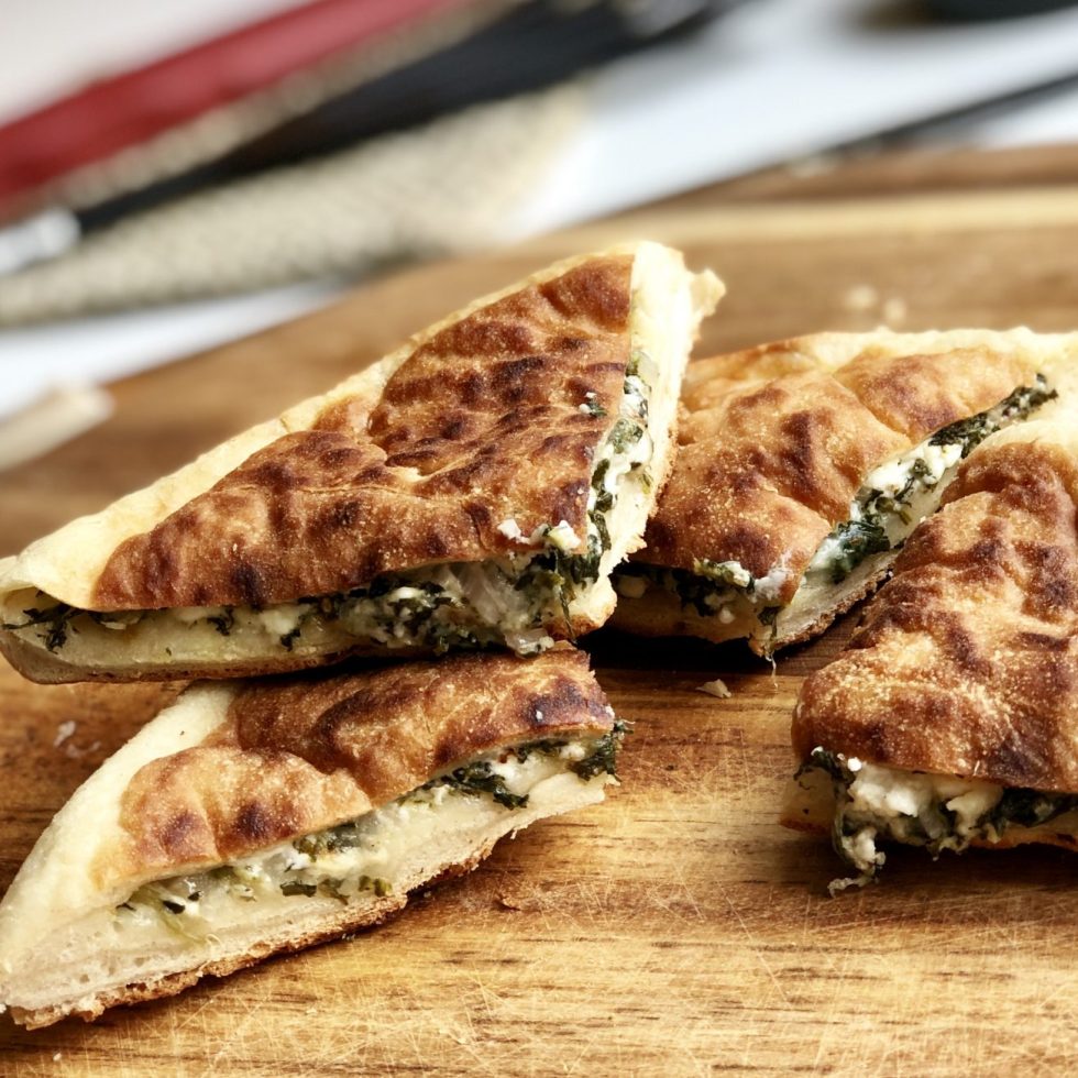 Flatbrød med spinat og feta