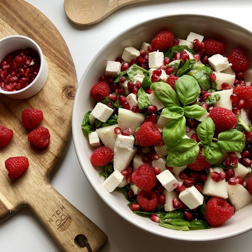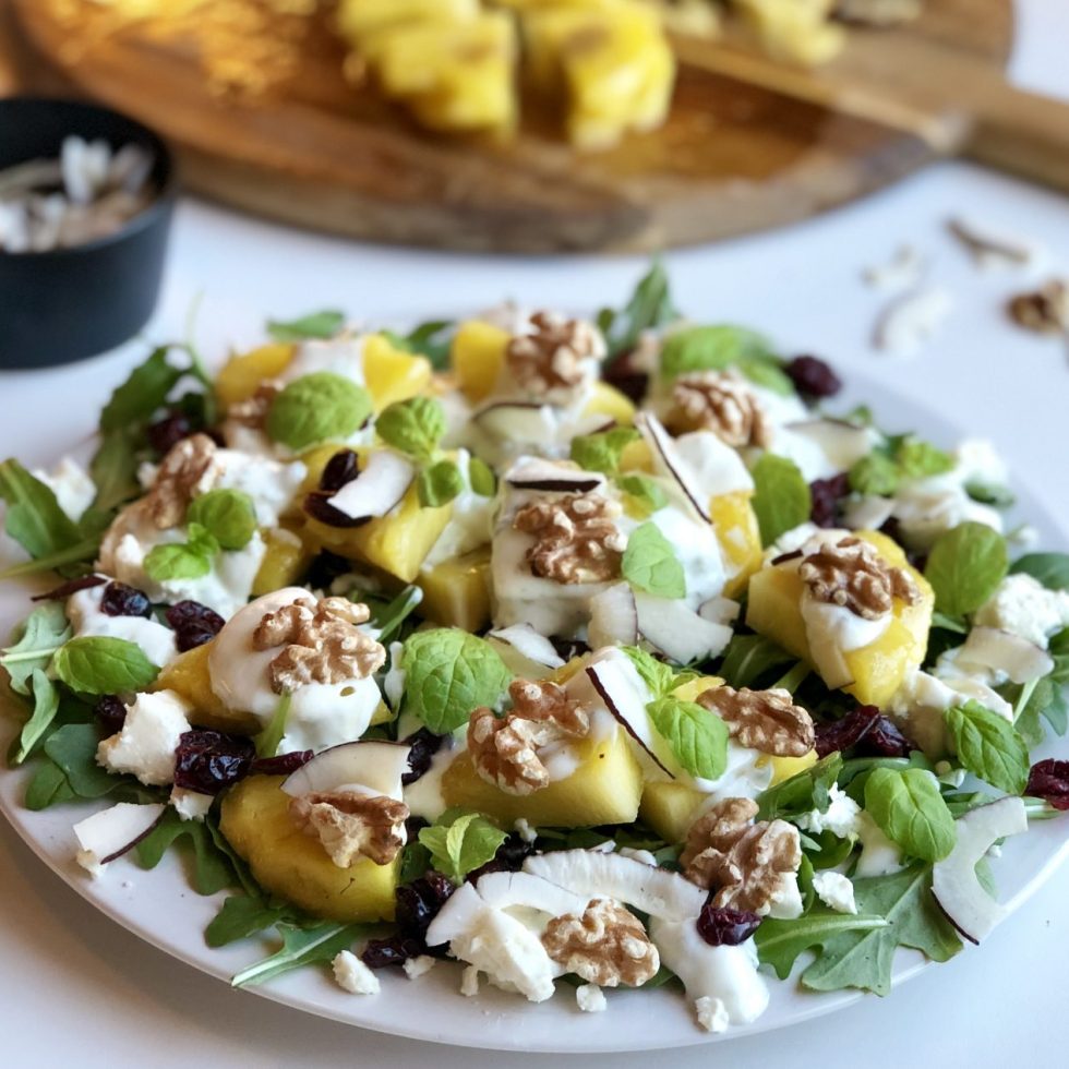 Sommersalat med honningstekt ananas og fetaost
