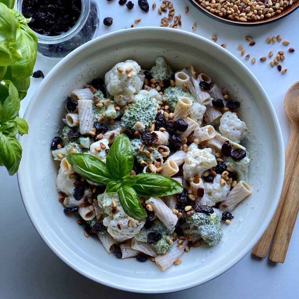 Blomkål og brokkolisalat med kikertpasta