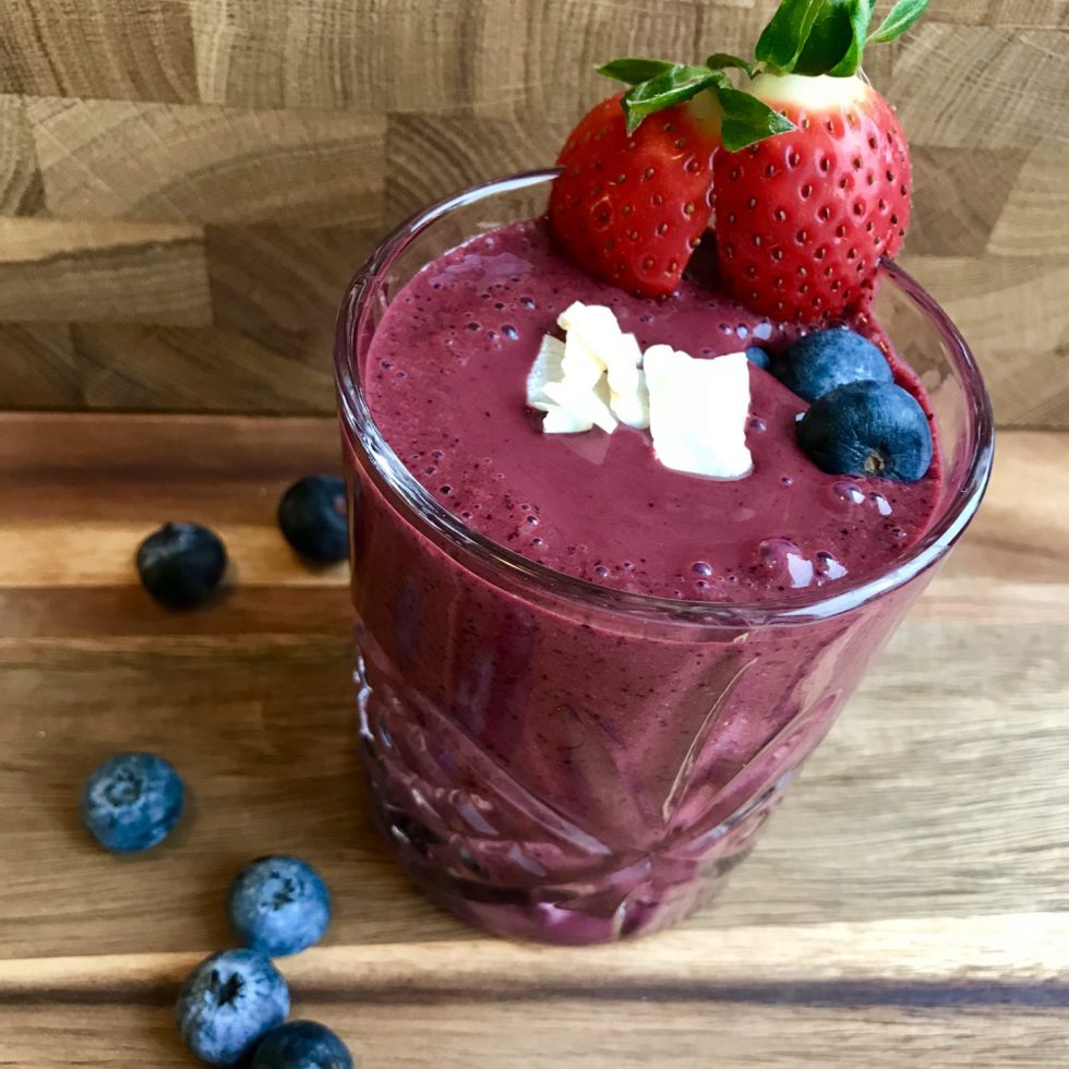 Jordbær og blåbær smoothie