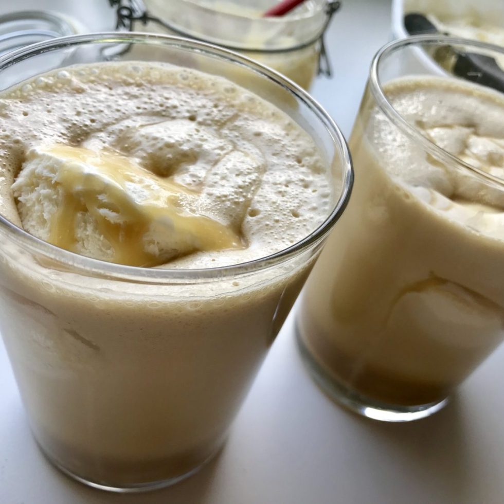 Iskaffe toppet med hjemmelaget vaniljeis