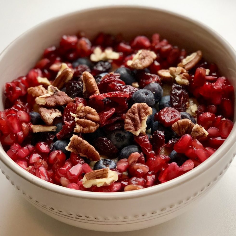 Risgrøt på kokosmelk med kanel, sirup, sitron og blåbær