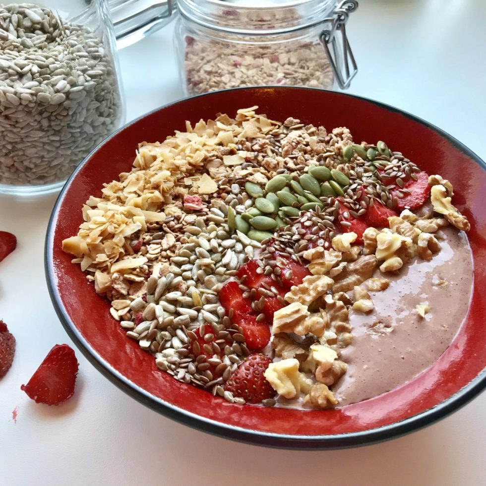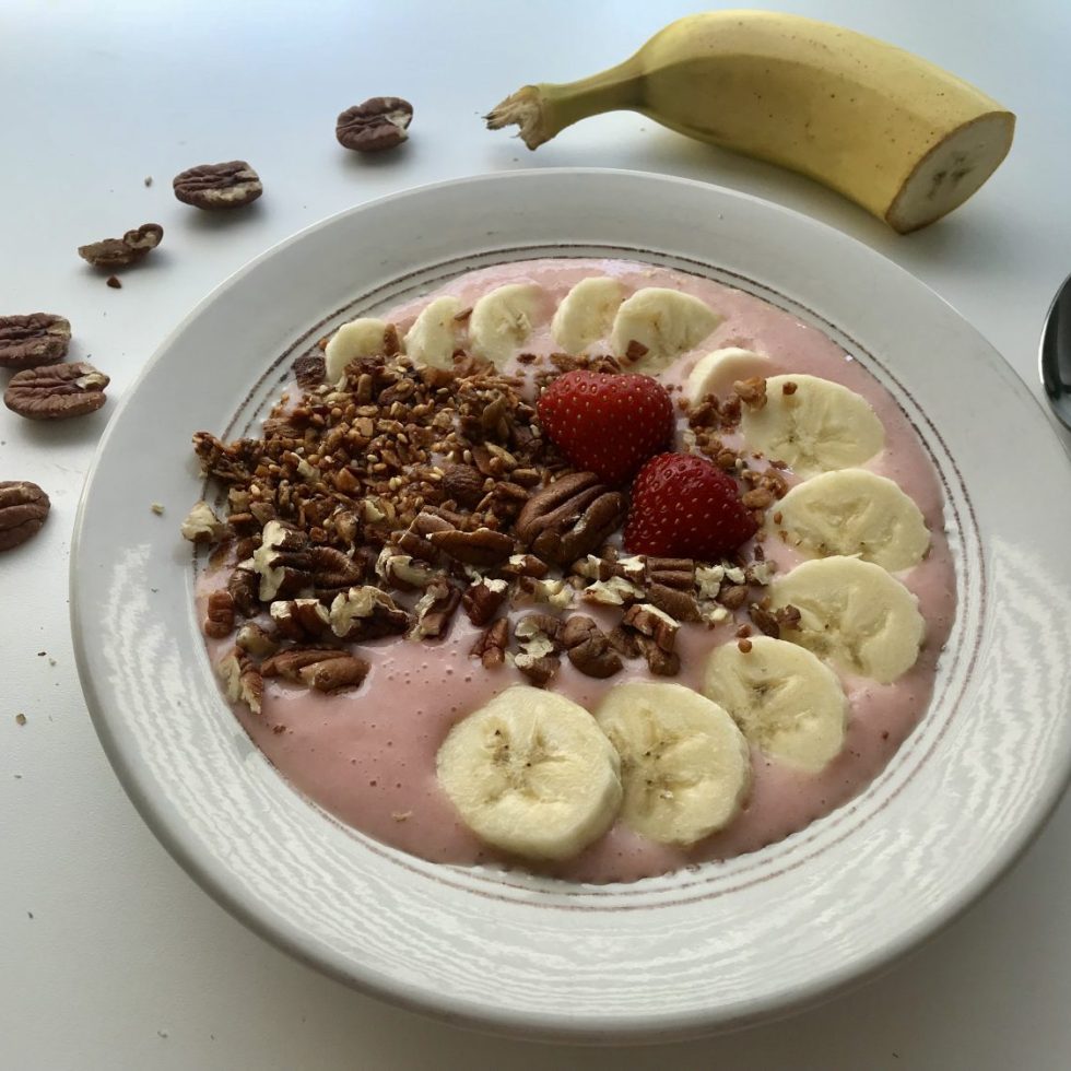 Smoothie bowl med banan og ristede pekannøtter
