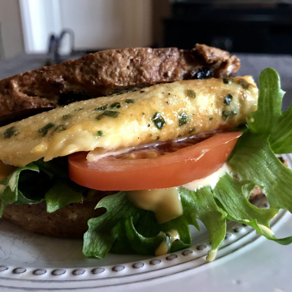 Sprøstekt sandwich med omelett og ost