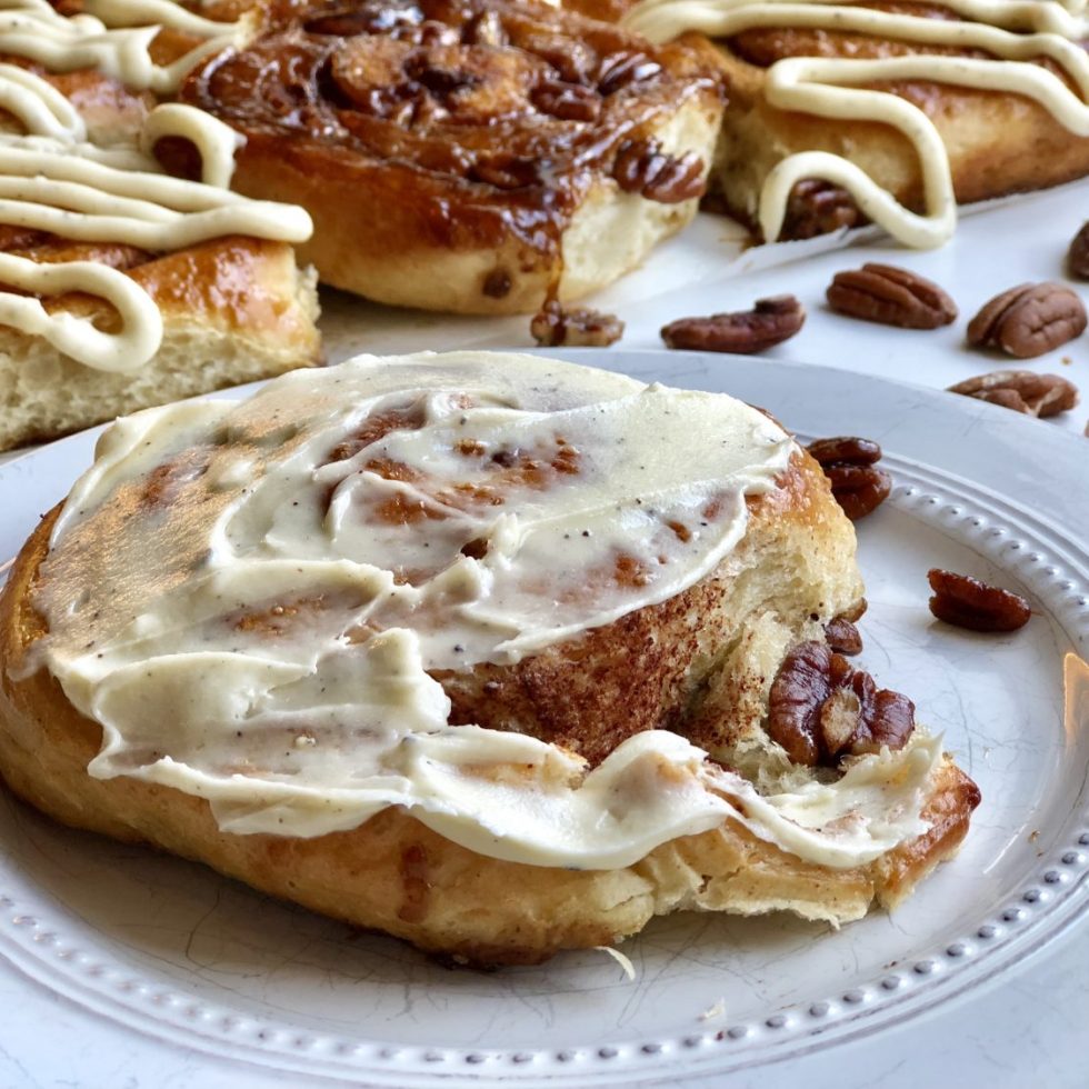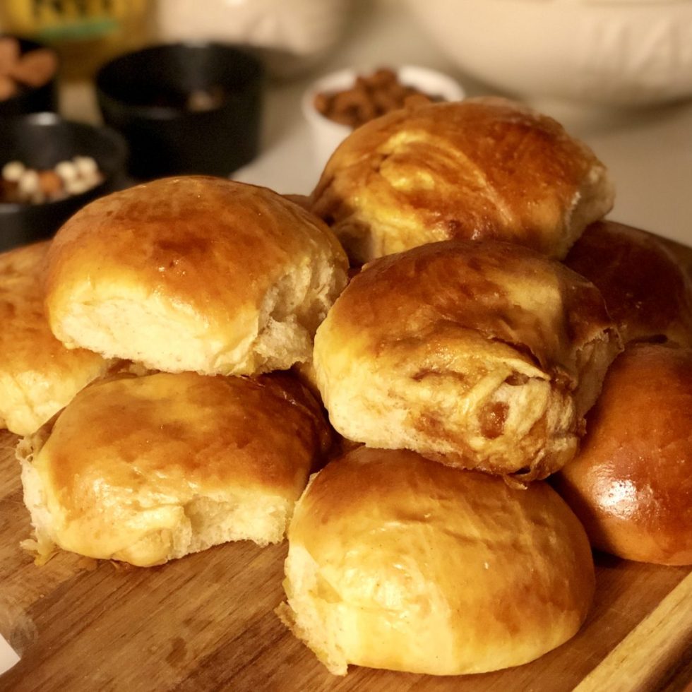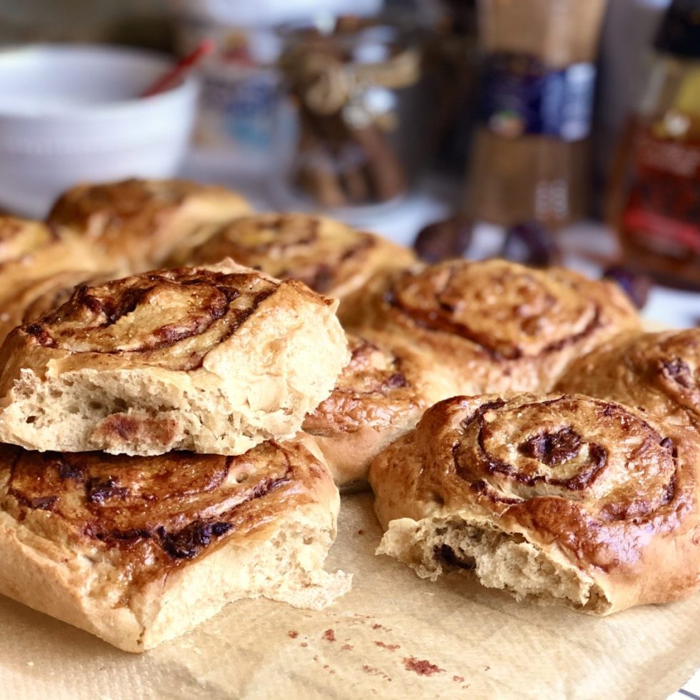 Kanelsnurrer med daddelfyll og ristede pekannøtter