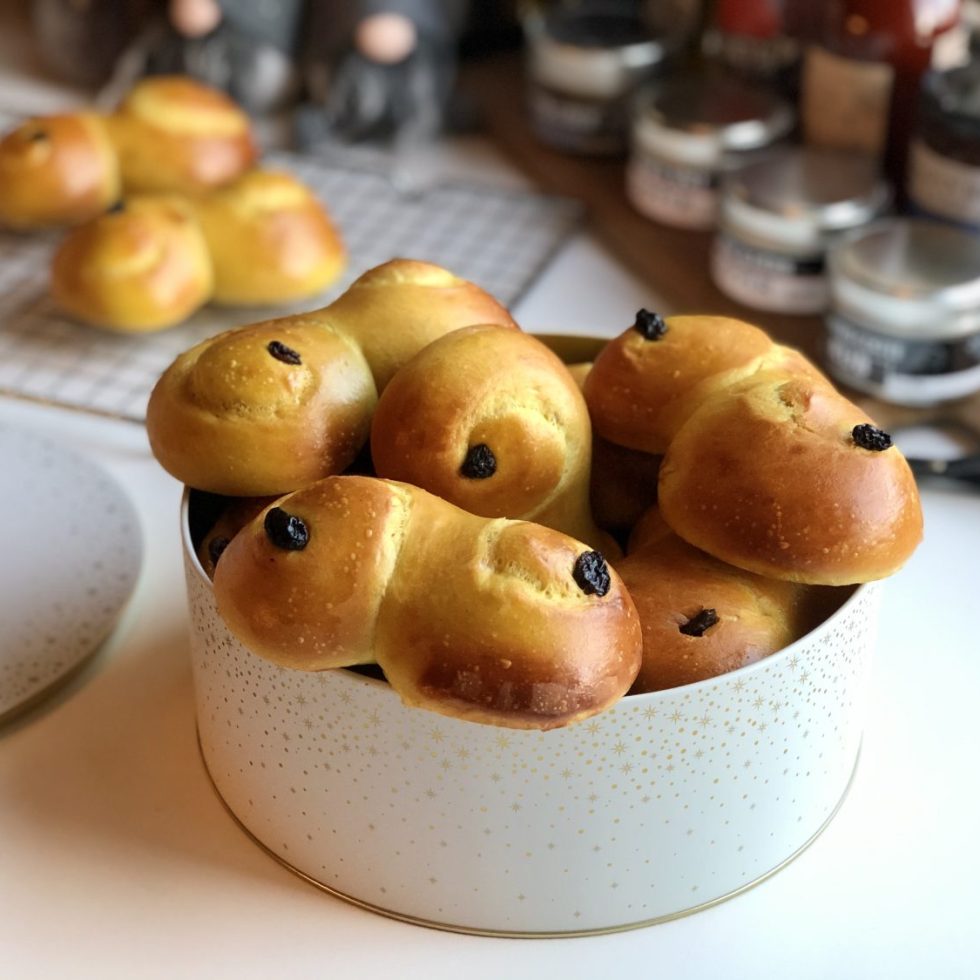 Lussekatter laget med surdeig og speltmel
