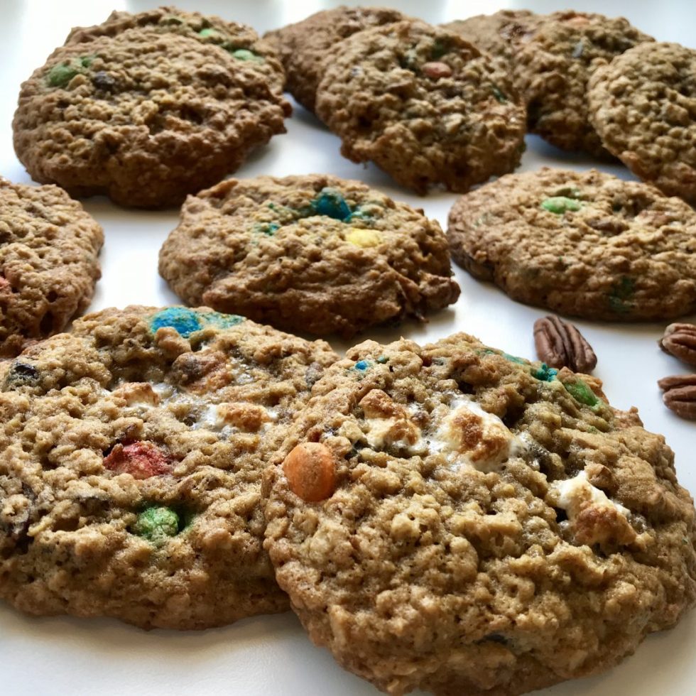 Homemade vanilla ice cream with cookie dough and caramel swirl