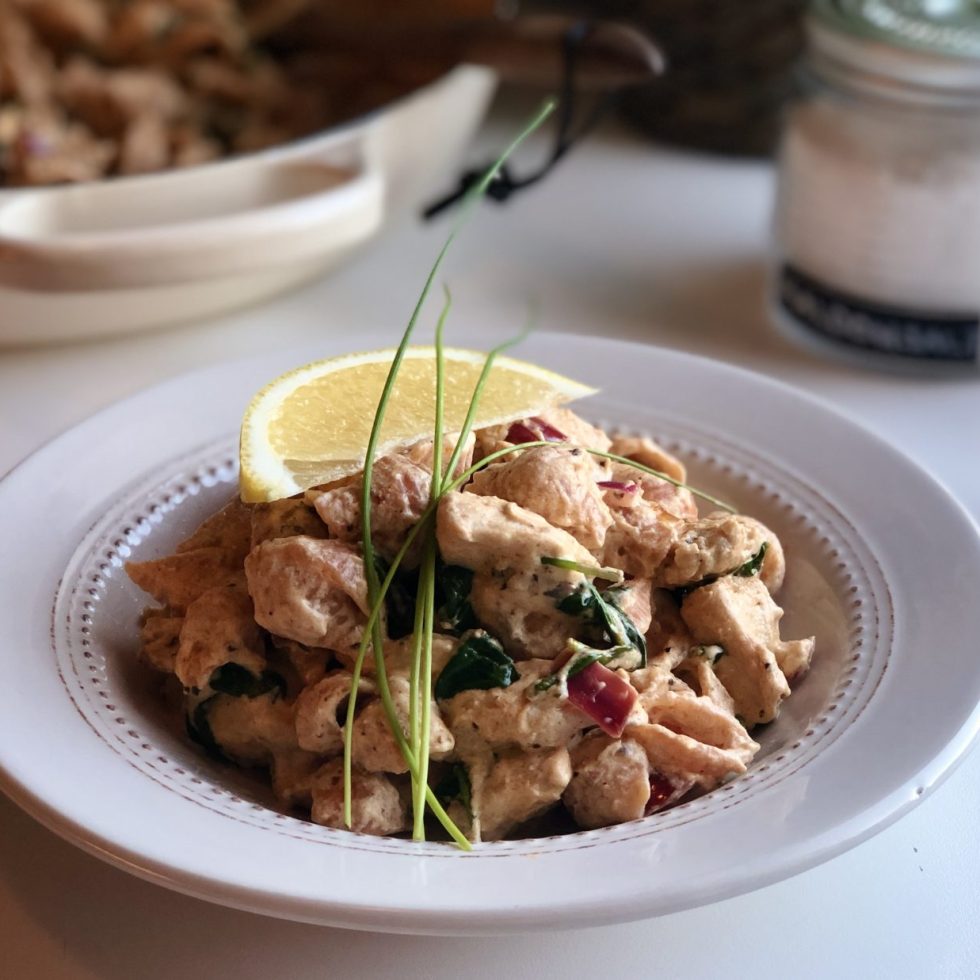 Pasta med kylling og spinat i kremet frisk sitronsaus med ost