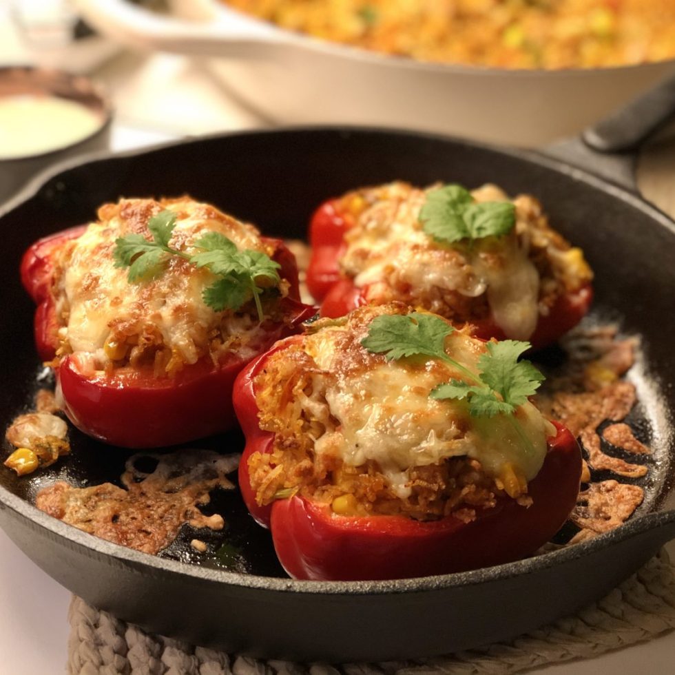 Ovnsbakt fylt paprika med kylling