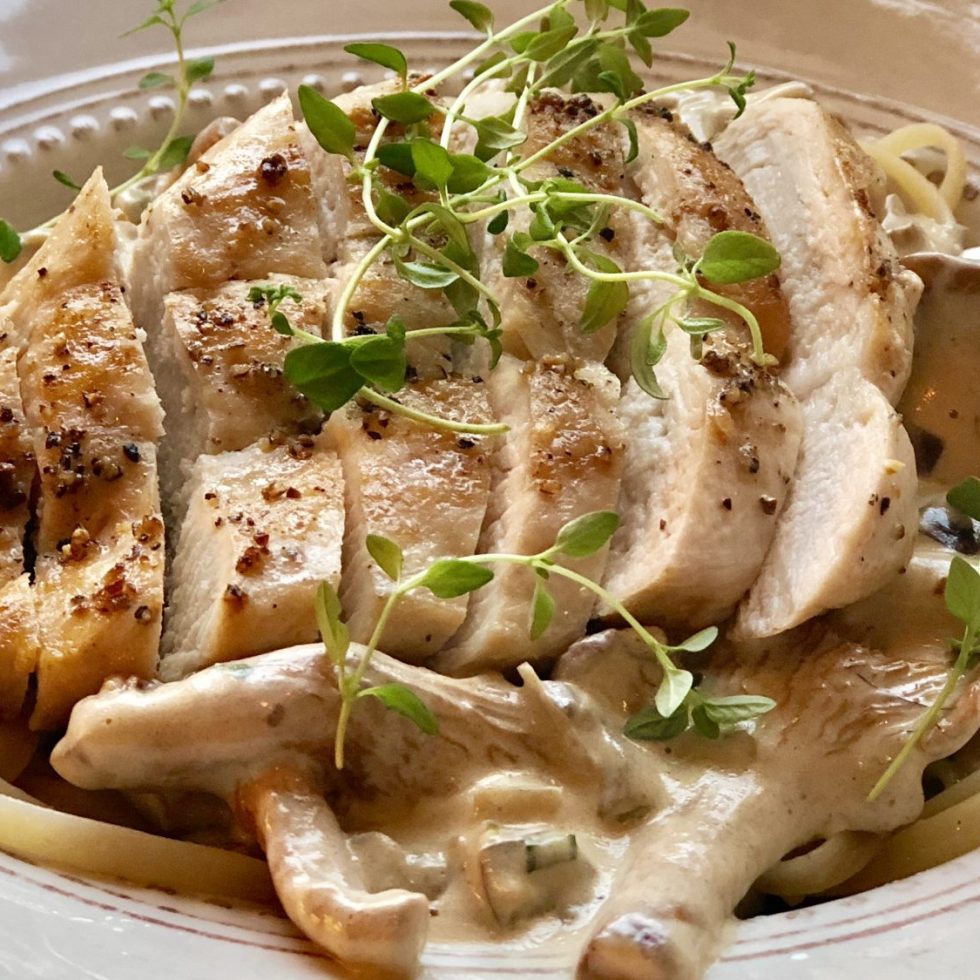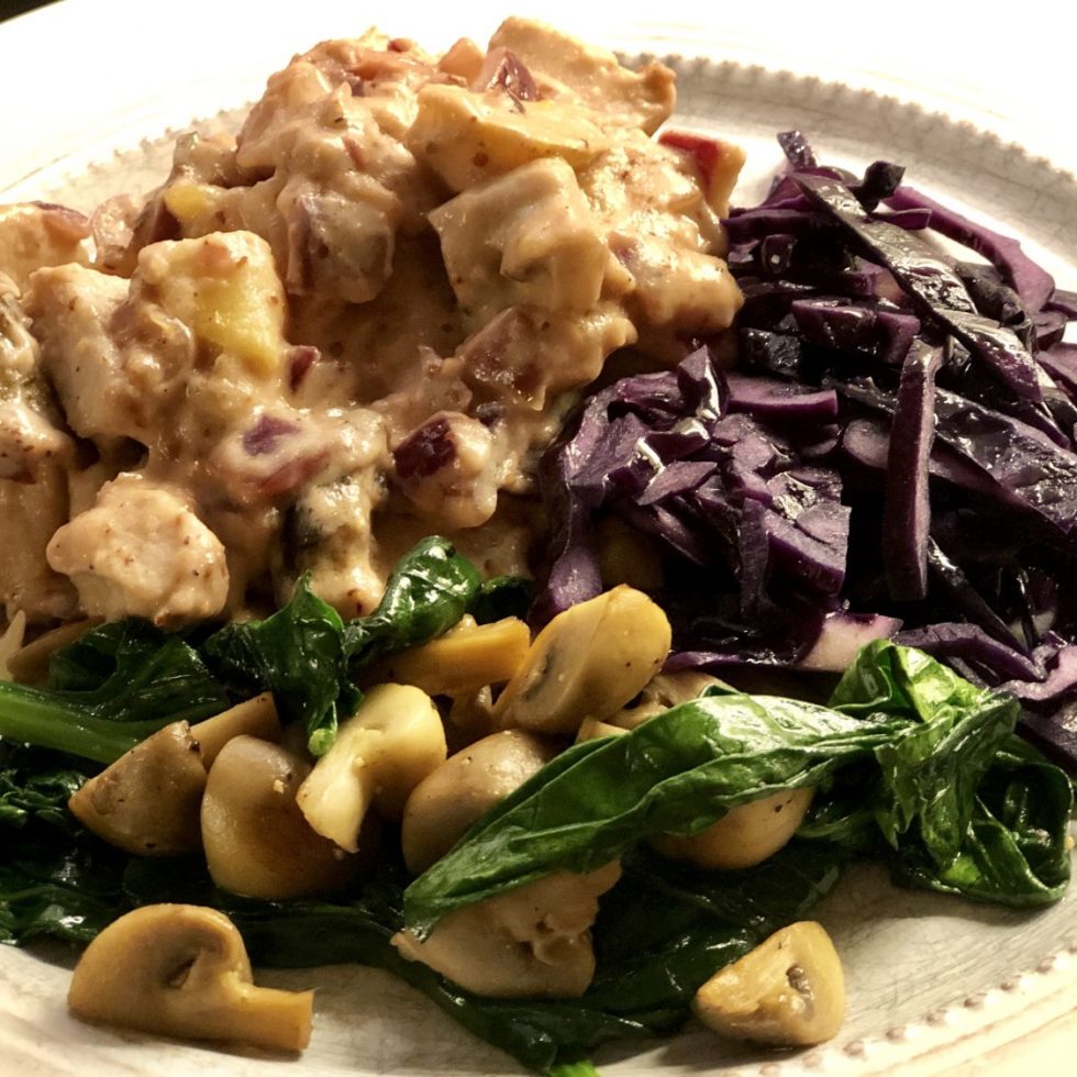 Kremet kylling med stekt sopp og spinat