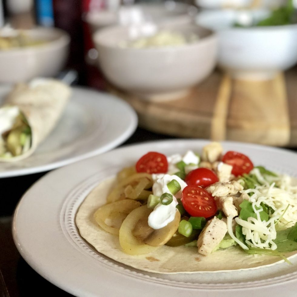 Fajitas med kylling og guacamole med hvitløk