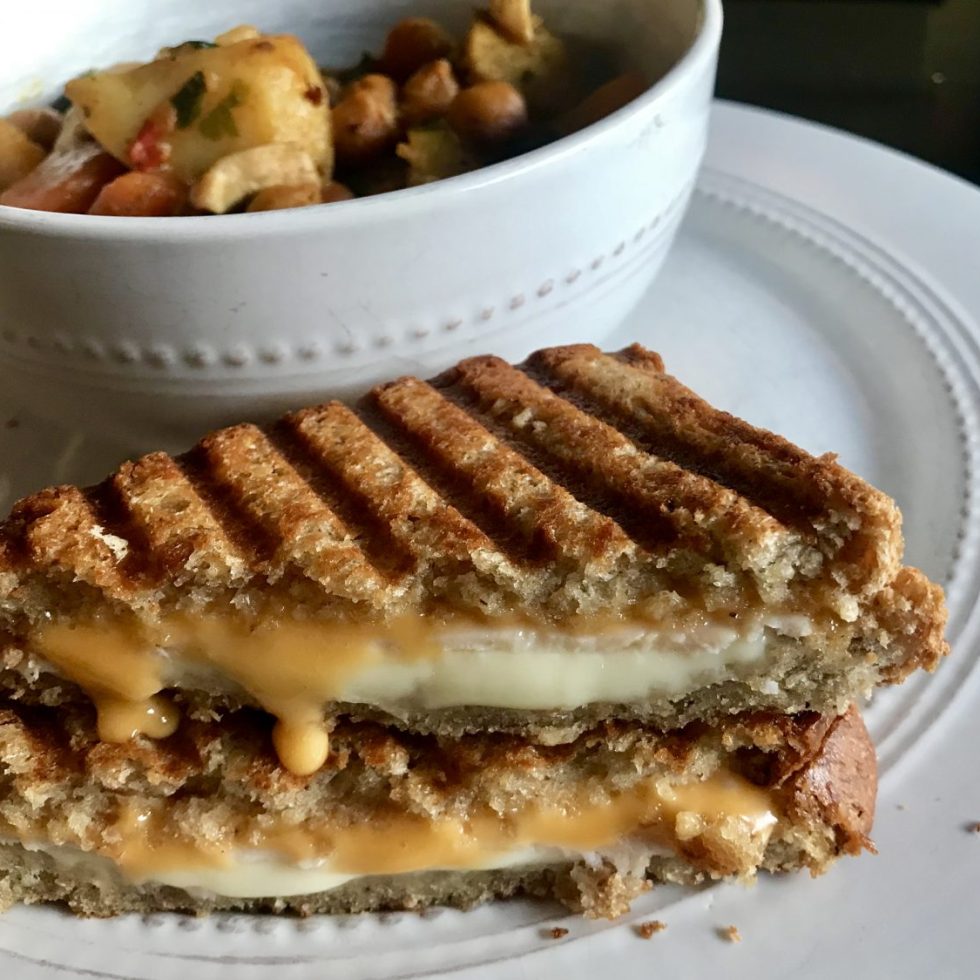 Grillet sandwich med ost og kyllingfilèt