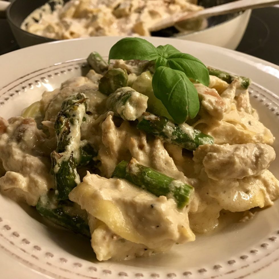 Tortelloni med kylling, sitron, mascarpone og asparges