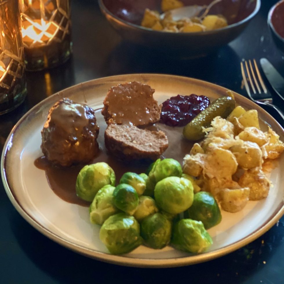 Hjemmelagde kjøttkaker med smørdampet rosenkål og ovnsbakte parmesanpoteter