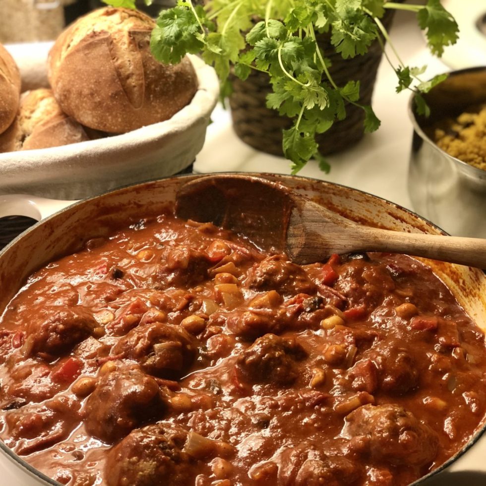 Marokkanske kjøttboller i spicy tomatsaus med krydret couscous
