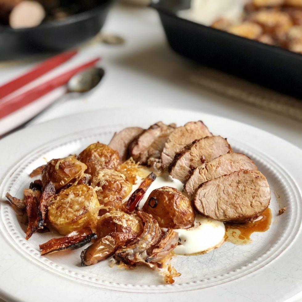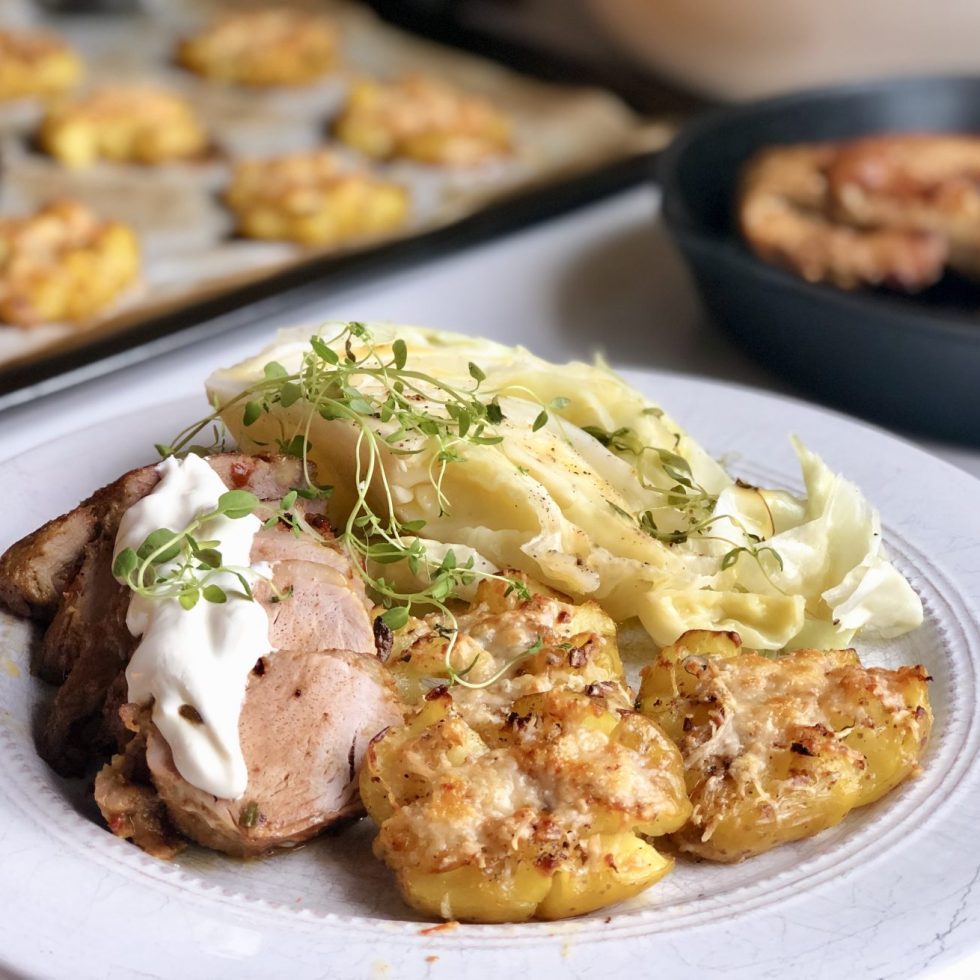 Indrefilet av svin med nykål og knuste hvitløkspoteter med parmesan