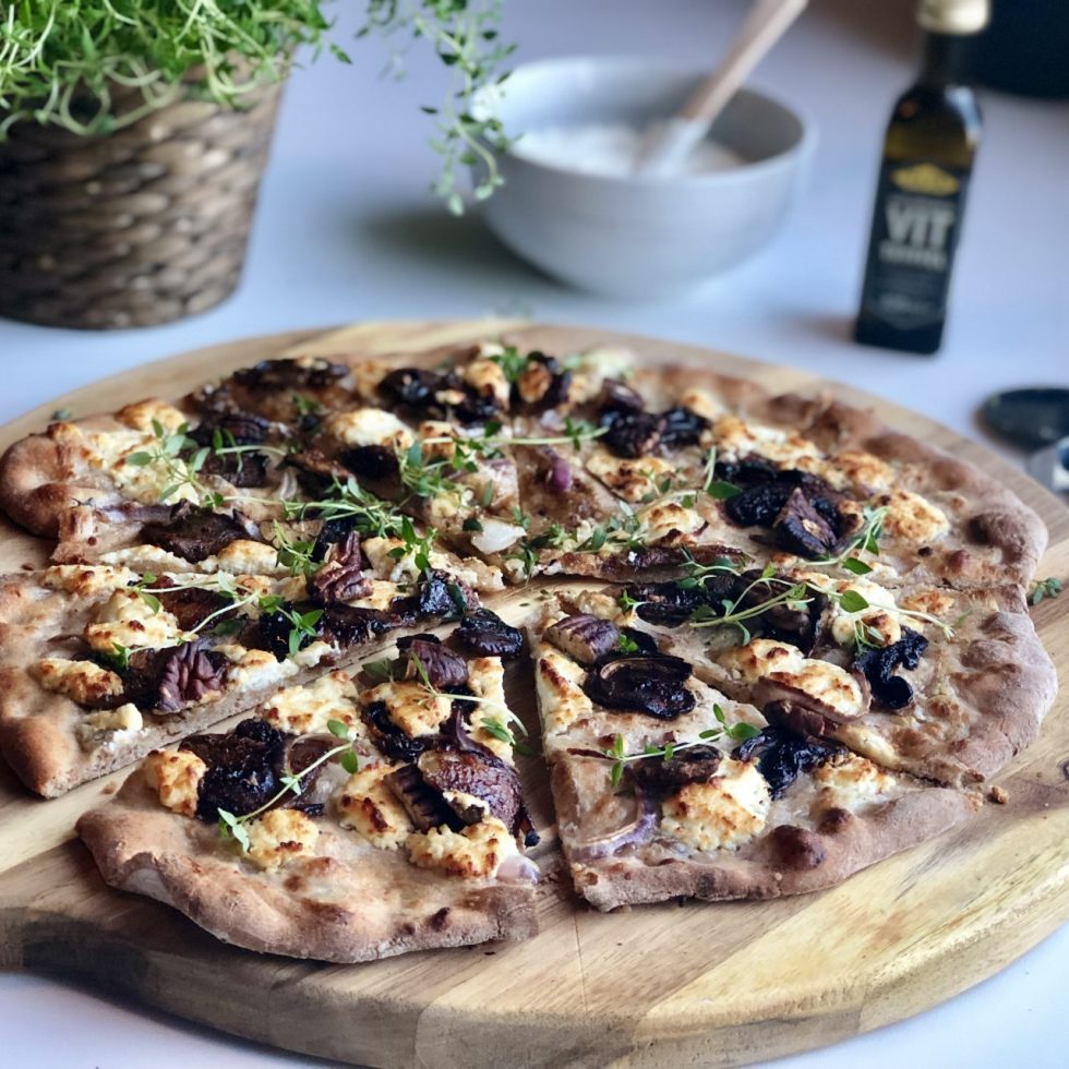 Surdeigspizza med balsamicoglasert sopp og chevre