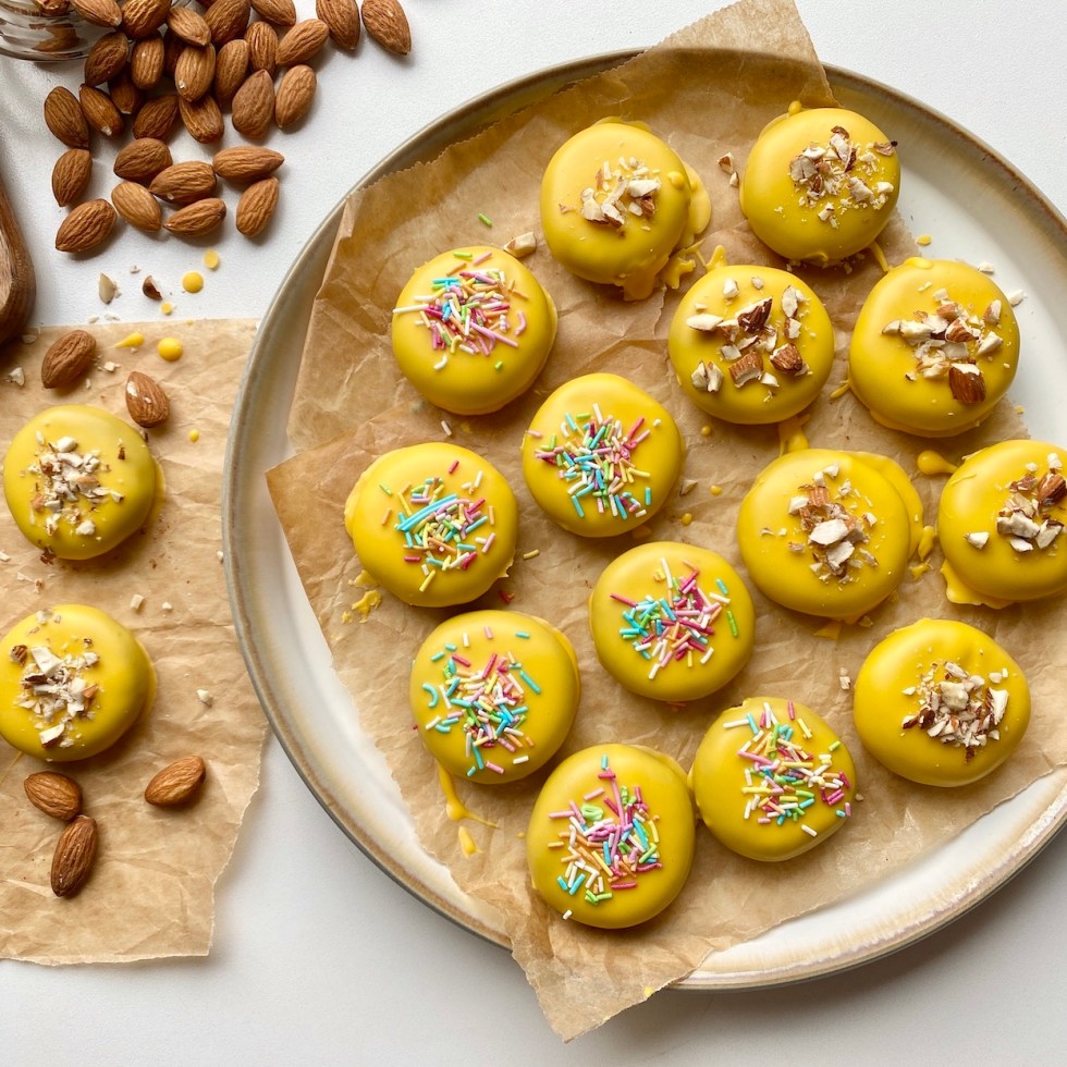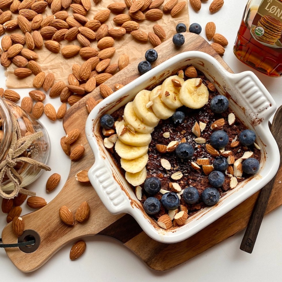 Ovnsbakt havregrøt med banan, blåbær og mandler