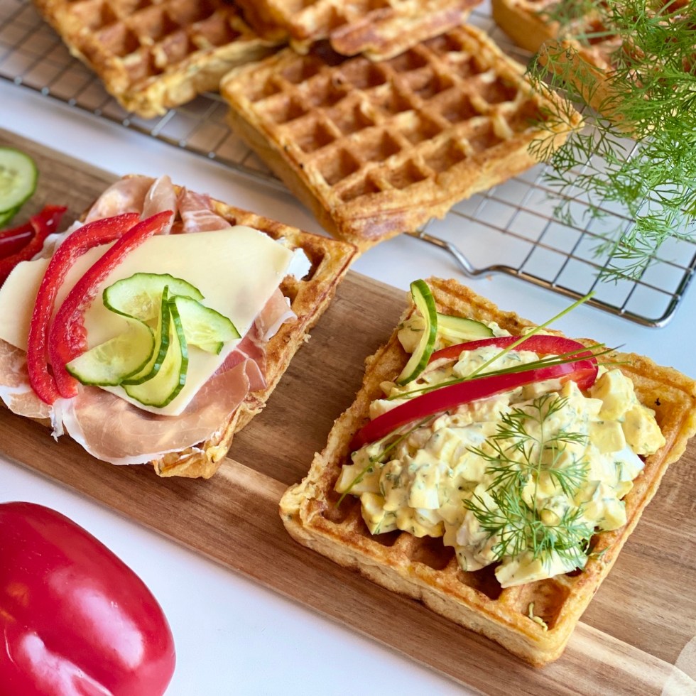 Grove belgiske vafler med potet, gulrot og gressløk