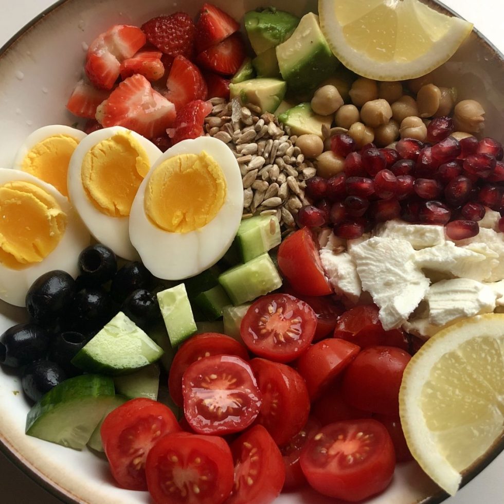 Nice cream bowl med jordbær, granola og ristede pekannøtter